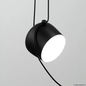 A kábel mint személyre szabható dizájnelem: a FLOS Aim pontosan alkalmazkodik a helyiség helyzetéhez és a felhasználó kívánságaihoz a bevonatos alumíniumból készült, elforgatható lámpatestnek köszönhetően. Az optikai polikarbonátból készült diffúzor biztosítja a vakításmentes, kellemes fényt. A lámpát 2013-ban tervezték.