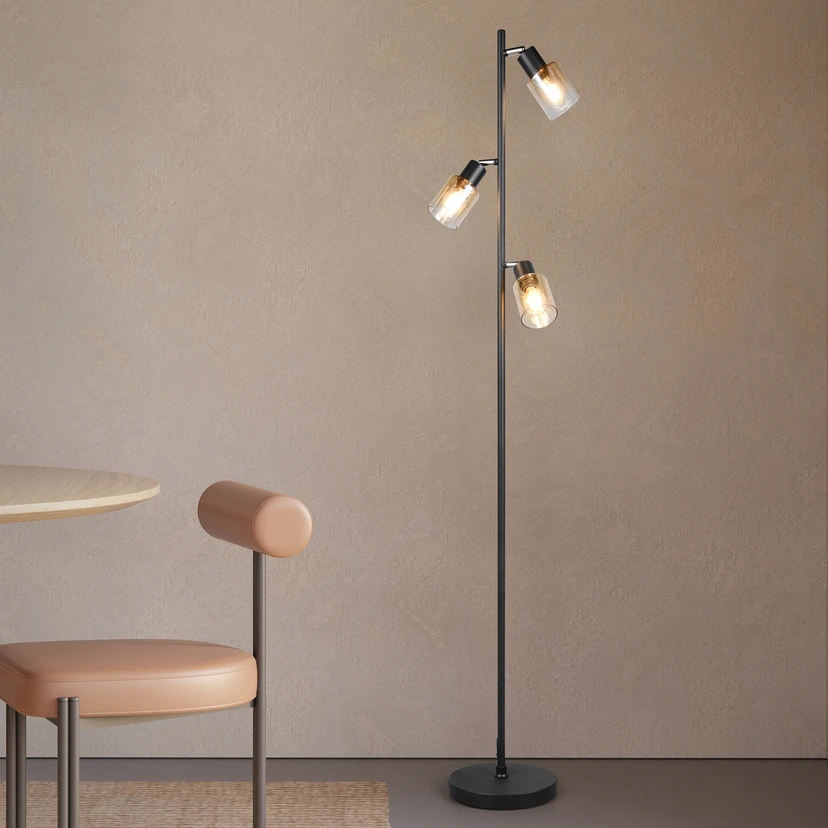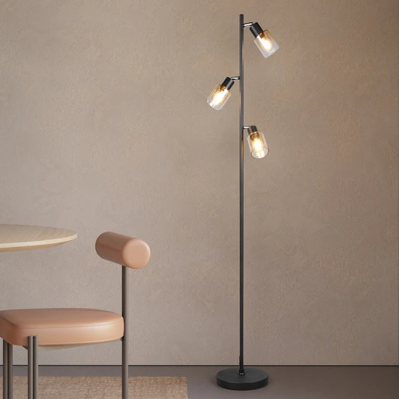 Cadiz álló világítás, fekete/borostyánszínű, 3 izzós, magasság 154 cm