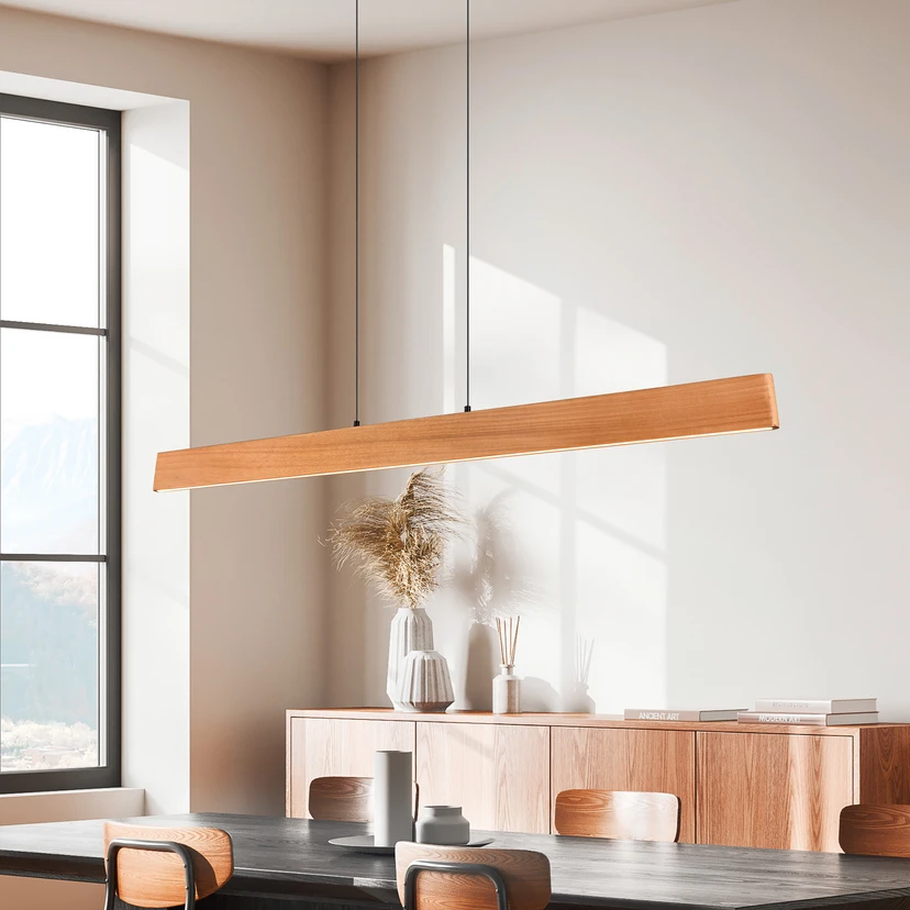 Edgewood LED függő lámpa, hossza 150 cm, fa színű fa, CCT