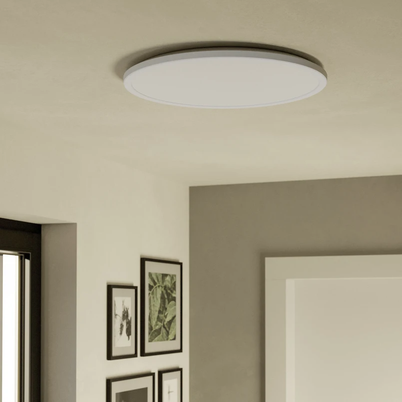 Rovito-Z LED mennyezeti lámpa, lapos kialakítás és intelligens vezérlés alkalmazással és hanggal A lapos Rovito-Z LED mennyezeti lámpa színes és fehér fényével a hangulat és a napszak függvényében többféle világítási lehetőséget kínál. A beépített, dimmelhető LED-ek fényesen és egyenletesen világítanak, szilárd hangulatvilágítást biztosítva. A Rovito-Z azonban nem csak mennyezetre, hanem egyszerű fali lámpaként is felszerelhető. A lámpa okosan vezérelhető egy megfelelő alkalmazással, egy kompatibilis hangasszisztenssel vagy klasszikusan egy megfelelő távirányítóval is. Funkciók / kompatibilitás: - vezérelhető az ingyenes AwoX HomeControl alkalmazással - kompatibilis más gyártók ZigBee 3.0-t használó intelligens otthoni rendszereivel - közvetlen kapcsolat lehetséges az Amazon Echo és Google Home készülékekkel - megnövelt hatótávolság a kiegészítő Bluetooth hálónak köszönhetően - kompatibilis az EGLO connect-c Bluetooth sorozat összes elemével - internetkapcsolat nélkül is vezérelhető egy megfelelő távirányítóval (lásd tartozékok)