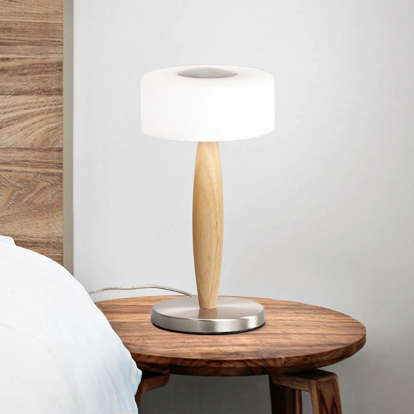 Elea LED asztali lámpa érintésvezérlésű dimmerrel és fa elemekkel Az Elea LED asztali lámpa egyesíti az elegáns designt a funkcionális világítástechnikával. A fúvott üveg és a fa kombinációja meleg és hívogató hangulatot teremt bármely helyiségben. A hosszú élettartamáról és energiahatékonyságáról ismert, beépített LED-es fényforrással az Elea fenntartható megoldást kínál a nappali vagy a hálószoba megvilágítására. Az asztali lámpa érintéses dimmerrel van felszerelve, amely lehetővé teszi a fényerősség intuitív szabályozását. Ez lehetővé teszi, hogy a fényerő egy egyszerű érintéssel a kívánt hangulathoz igazodjon. A villódzásmentes világítás kellemes fényt biztosít zavaró hatások nélkül, ami különösen előnyös a hosszabb használat során.
