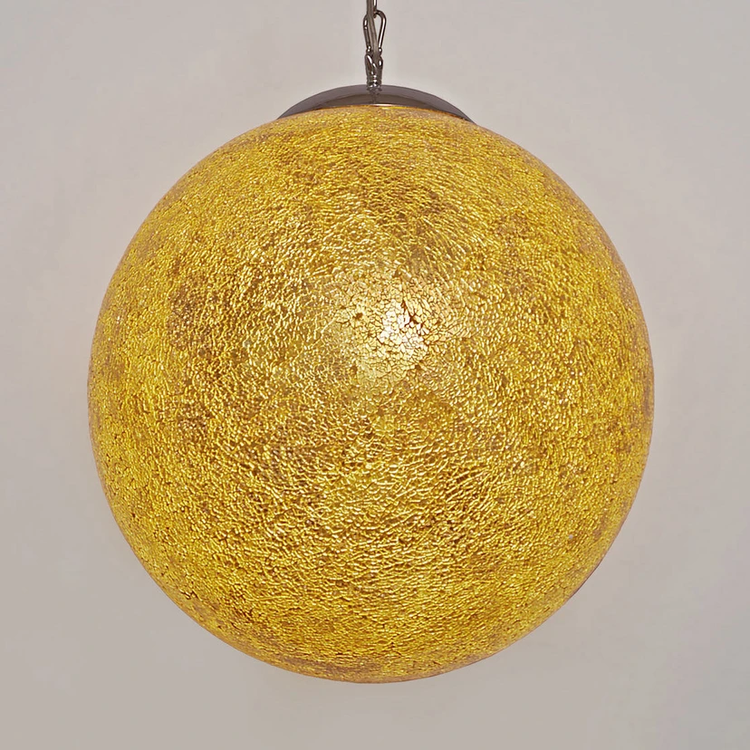 A Narziso függőlámpa gömb alakú ernyőjét borostyánszínű üvegből készült filigrán mozaik alkotja, amely krómozott lánccal kapcsolódik a krómozott lámpabúrához. A felhasznált izzó fénye hatásosan helyezi a mozaik dekoratív szerkezetét a színpadra. Meleg, lágy fényt sugároz a szobába mindenfelé. Ideális hangulatvilágításként vagy étkezőasztal megvilágítására. A felfüggesztés magassága a telepítés során egyszer változtatható 70 cm és 145 cm között.