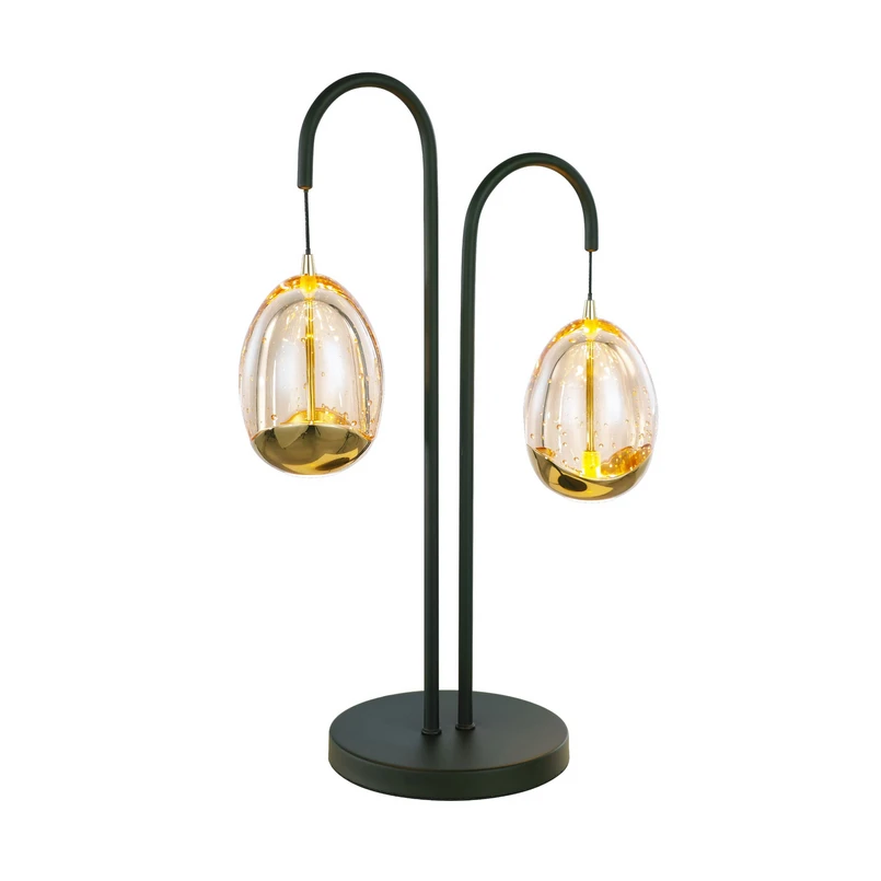 Golden Egg asztali lámpa fekete/borostyán 45 cm 2-lámpás fém/üveg