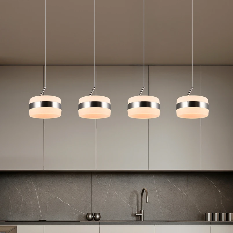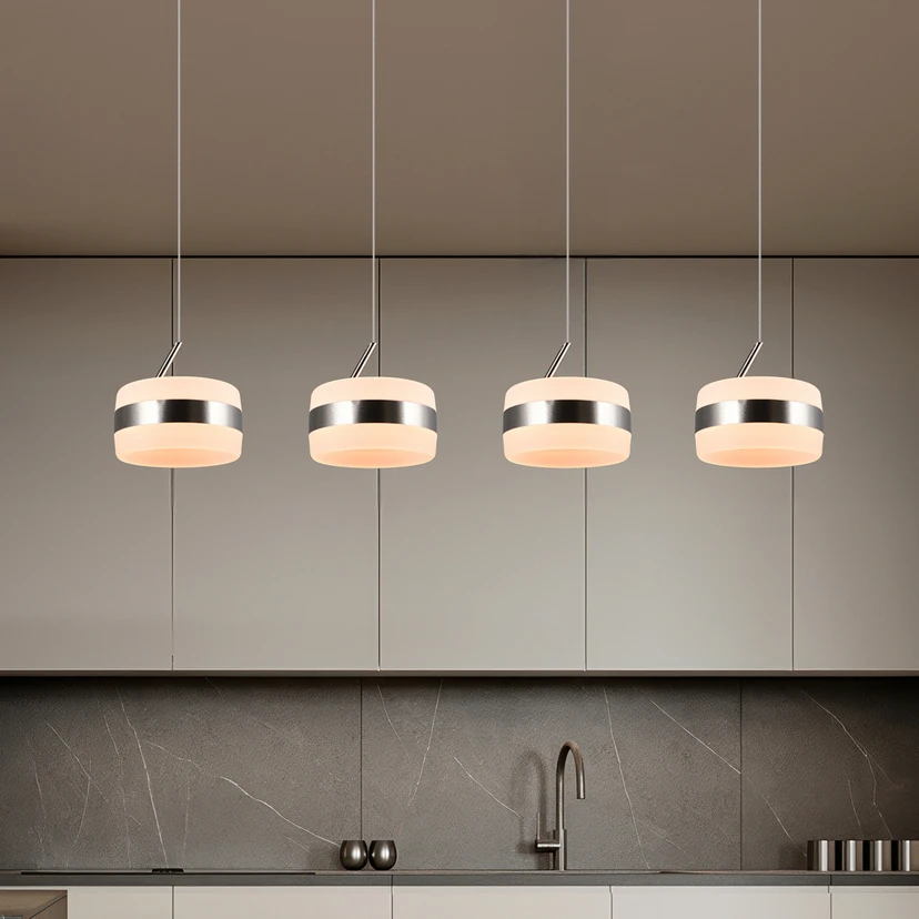 A 4 izzós LED függő világítás Dios egyszerű és visszafogott kialakításával nyűgözi le a modern és minimalista lakóterek kedvelőit. Tiszta vonalai és diszkrét formája révén harmonikusan illeszkedik a legkülönbözőbb berendezési stílusokhoz, anélkül, hogy uralná a teret. A Dios négy fényforrásával különösen egyenletes és kellemes megvilágítást biztosít. Akár az étkezőasztal felett, a konyhában vagy stílusos világításként a nappaliban: a Dios LED függő világítás barátságos légkört teremt, miközben a funkcionális egyszerűségre helyezi a hangsúlyt. A fényerő kényelmesen és fokozatmentesen szabályozható a kapcsoló-dimmer segítségével – egyszerűen a hagyományos fali kapcsolóval. A Dios matt nikkel bevonatú fémből készül, ami modern, időtálló megjelenést kölcsönöz a világításnak.