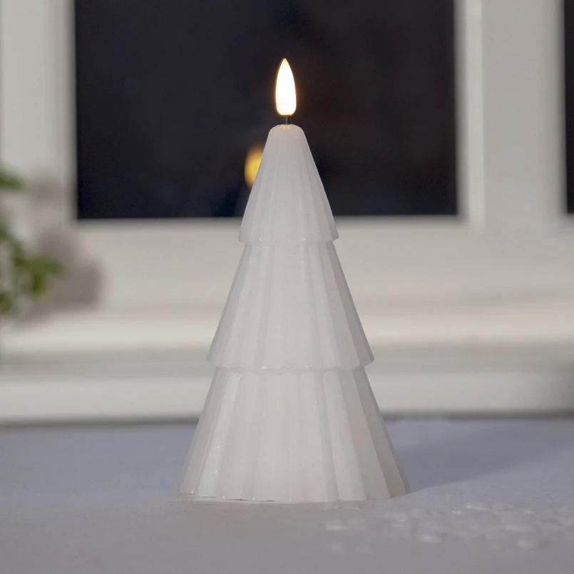 Elemmel működő LED dekorációs gyertya Flamme Grany viaszból beltérre - időzítő funkcióval A LED gyertya Flamme Grany praktikus választás, különösen a karácsonyi dekorációhoz az otthonban. A díszgyertya valódi viaszból készült, és egy tűlevelű stilizált formájával készült. Elemes működésének köszönhetően bárhol elhelyezhető. Időzítő segítségével automatikusan bekapcsolható (6 óra bekapcsolás, 18 óra kikapcsolás).