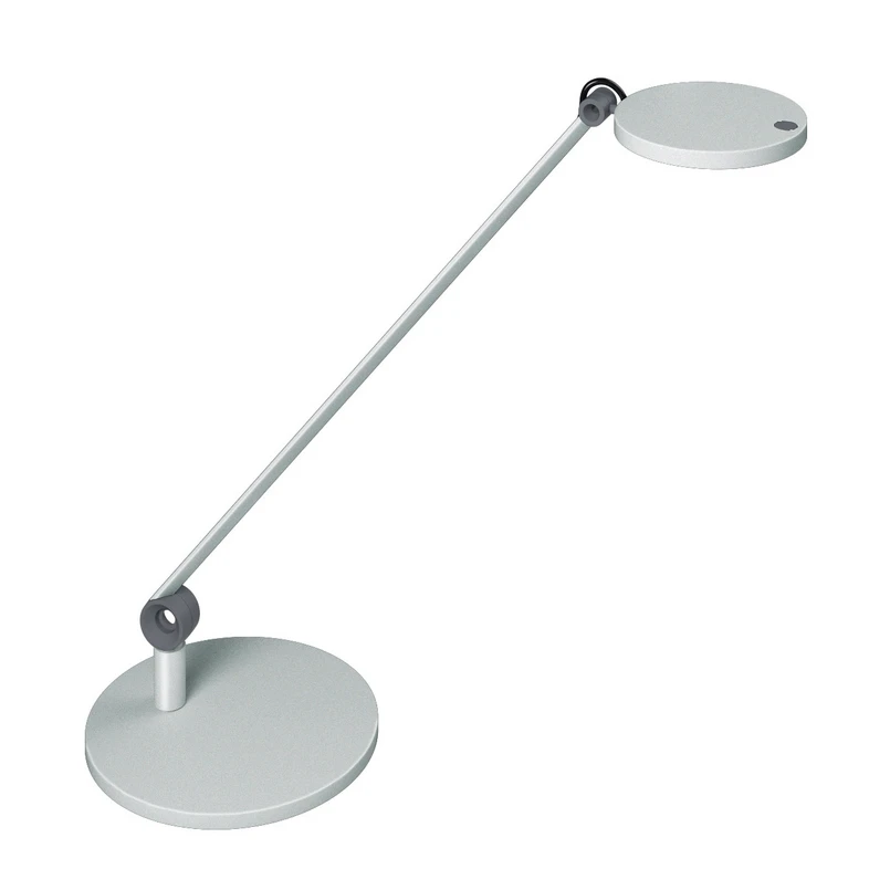 Egyszerű irodai asztali lámpa PARA.MI MFTL 102 R állítható karral és lámpafejjel Ez a LED-es asztali lámpa rugalmas és átfogó világítást biztosít a munkahelyen vagy az otthoni íróasztalnál. Egy kerek lámpafejjel és egy ugyancsak kerek talppal van felszerelve, amelyeket egy állítható kar köt össze. A fej elforgatható és elfordítható, az alsó csukló pedig lehetővé teszi, hogy bármilyen szögben el lehessen dönteni. A hatékony és nagy teljesítményű LED-modul homogén, nagy felületű fényt bocsát ki, amely a lámpafejen található vezérlőgombbal kapcsolható és tompítható. A speciálisan kifejlesztett fényvisszaverő is biztosítja a vakításmentes munkavégzést - Karbantartásmentes és önzáró csuklók, fokozatmentesen állítható - Kapcsolás és dimmelés memóriafunkcióval a lámpafejen található vezérlőgomb segítségével - Állítható bekapcsolási viselkedés és automatikus kikapcsolás - Az iF Design Award 2015 és a German Design Award 2016 győztese - Állítási tartományok: az alsó csukló 360°-kal elforgatható, 115°-kal előrefelé, 120°-kal hátrafelé dönthető; a felső csukló 45°-kal elforgatható, 120°-kal mindkét oldalra dönthető