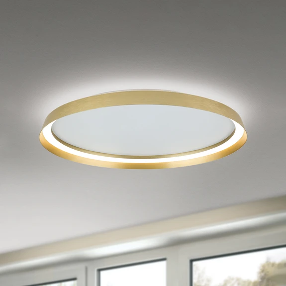 LED mennyezeti lámpa Manta, Ø 60 cm, arany színű, alumínium, fel/le, fel/le