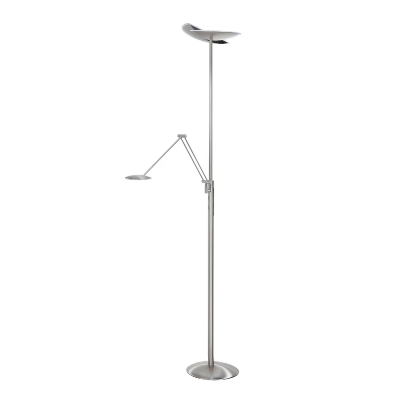 Sapporo - LED-es mennyezeti lámpa osztott árnyékolóval és olvasókarral A LED-es mennyezeti lámpa árnyékolóját alkotó két félkör alakú elem elforgatható, így a hagyományos mennyezeti lámpákkal ellentétben a fény iránya nemcsak felfelé, hanem ferdén is irányítható, így a meleg fehér fény különböző irányokba világíthat. A rúdra egy olvasólámpát is szereltek. Az olvasókar az egyéni igényeknek megfelelően igazítható, és mindkét fényforrás külön-külön szabályozható a két dimmerrel, hogy a világítás minden helyzethez igazodjon. A fény színe is szabályozható a melegfehér tartományban. A Tunable White funkcióval a fényhőmérséklet 2200 K és 2700 K között állítható, így a Sapporo ideális a különösen hangulatos világítás megteremtéséhez.