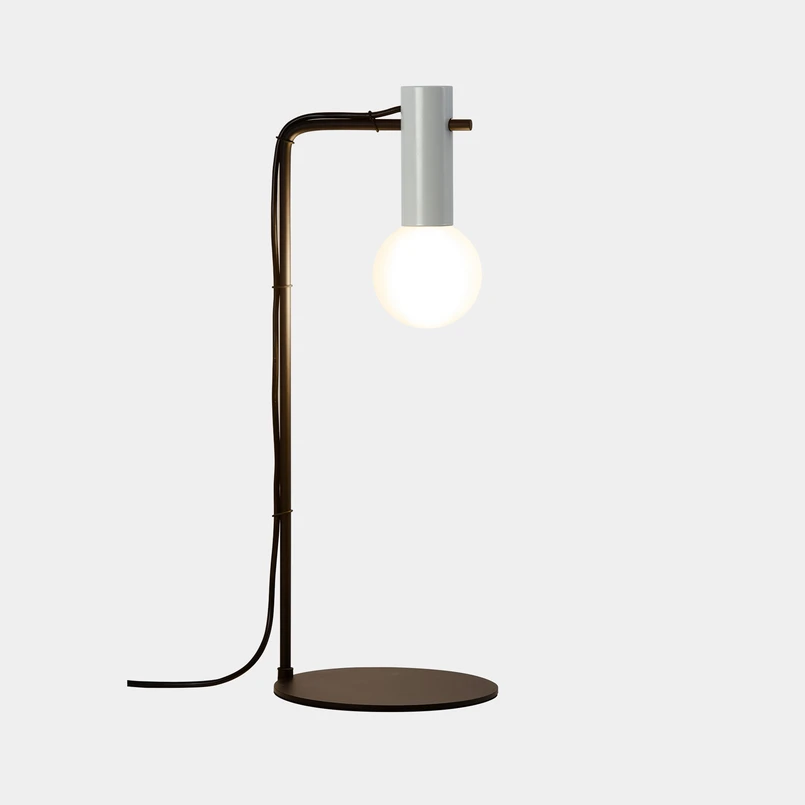 A Nude Curved asztali lámpa divatos, minimalista és nyitott dizájnban mutatkozik be. A lámpa foglalata egy hengerben található, amely nem rendelkezik árnyékolóval, és 360°-kal függőlegesen elforgatható. A hengert a karcsú vázkar felső, vízszintesen futó része tartja. Ez utóbbi - a kerek alaplemezhez hasonlóan - fekete színű.