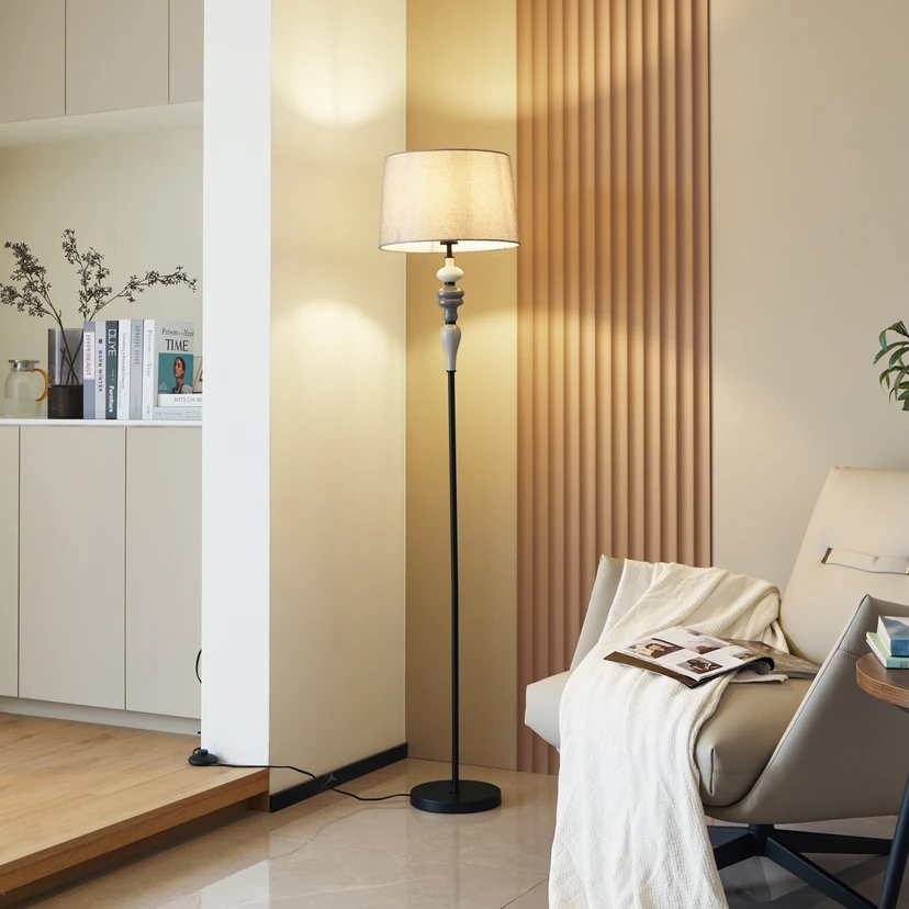 Lindby Haldorin állólámpa, szürke/fekete, textil, 157 cm