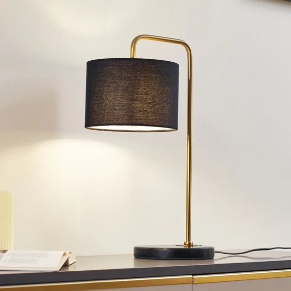 Hillary asztali lámpa márványból és textilből, skandináv dizájnban Tapasztald meg, hogy a Hillary asztali lámpa mennyire feldobja szobáid hangulatát. A fekete és arany kivitel kifinomult kombinációjával stílusos hangsúlyokat teremt nappalijában, étkezőjében vagy hálószobájában. A lámpa skandináv stílusa zökkenőmentesen illeszkedik a modern lakberendezési koncepciókba, és olyan légkört teremt, amely pihenésre hív, valamint növeli a termelékenységet. Vezérlése kábeles kapcsolóval történik.