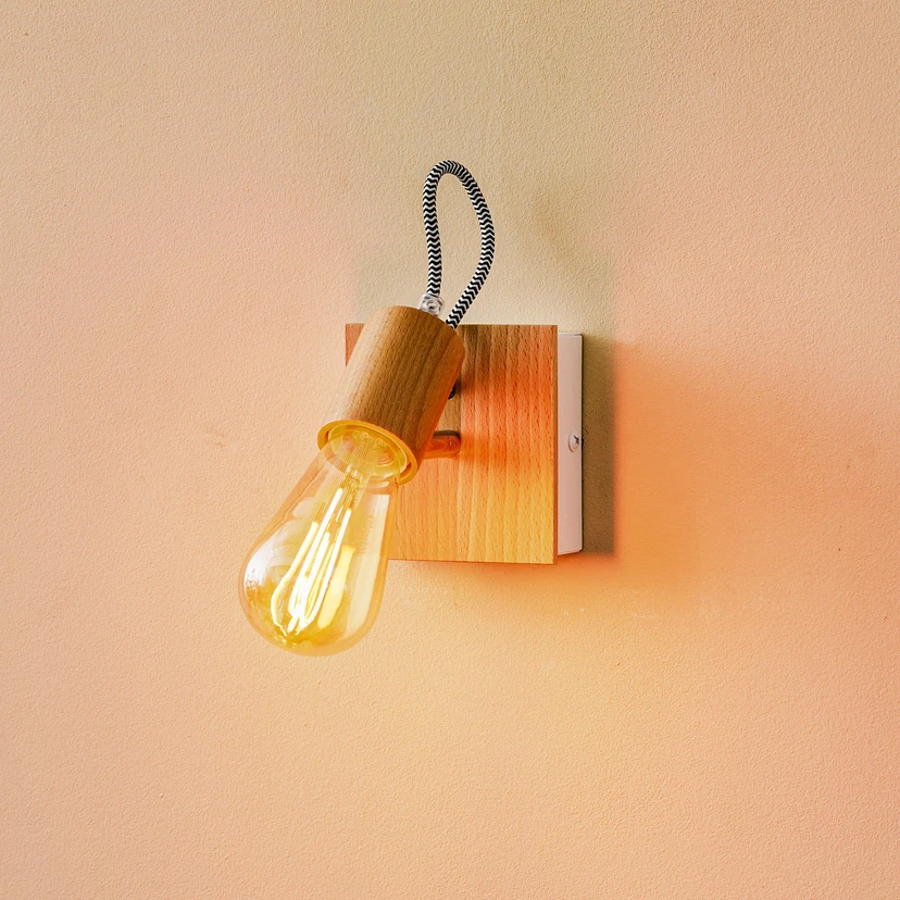 Loki fali világítás, 1 foglalat, világos fa/fehér