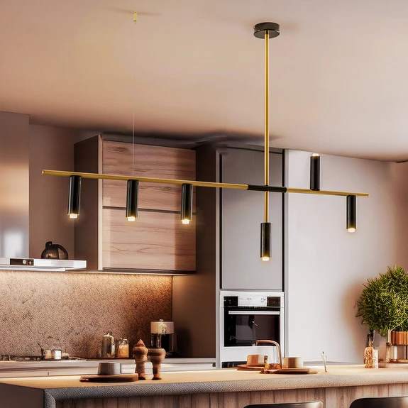 A kiváló minőségű fémből készült 1083K40 mennyezeti világítás a skandináv egyszerűséget ötvözi a fekete és sárgaréz modern akcentusaival. Ez a 6 izzós világítás kiváló példája a kortárs designnak, amely stílusos hangulatot teremt a nappaliban, az étkezőben vagy a folyosón egyaránt. A külső fényerőszabályozóval dimmelhető, így a fényerő rugalmasan beállítható a különböző hangulatokhoz.