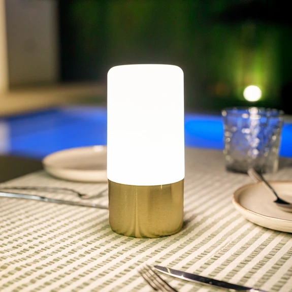 Newgarden LED-es újratölthető asztali lámpa Maia sárgaréz színű IP54 RGBW
