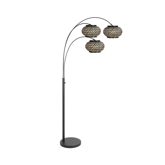 Nox Light álló világítás, 3 izzós lámpa, forgatható, ívelt búraival, melyeket látványos, fekete és természetes színű bambuszfonatból készült búrák díszítenek, és különleges esztétikájával nyűgözi le a tekintetet. A 3 izzós világítás nagy területet világít meg, és kellemes hangulatot teremt a nappali és étkező területeken. A mély fekete és a meleg természetes színek kombinációja hangsúlyozza a stílusos kialakítást, és zökkenőmentesen illeszkedik a különböző belsőépítészeti koncepciókba.
