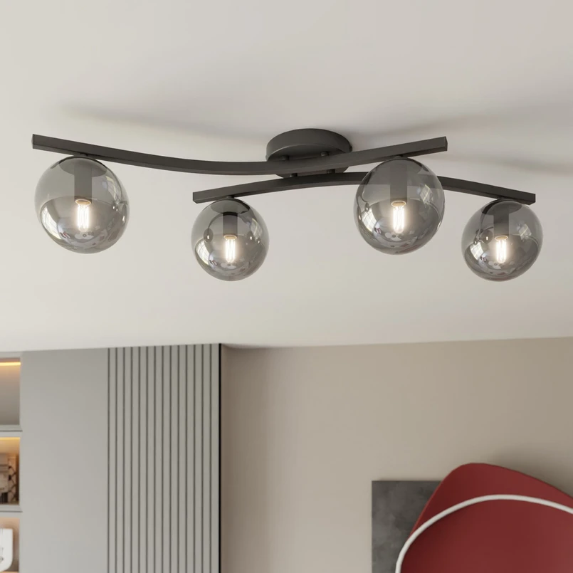 Opus mennyezeti lámpa, 84 cm hosszú, füstszürke/fekete, 4 lámpás.