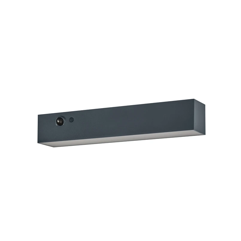 A beépített érzékelőnek köszönhetően a világítás automatikusan vezérelhető, ami növeli a kényelmet és a hatékonyságot. A mellékelt fényerőszabályozó segítségével a fényerő rugalmasan beállítható az egyéni igényeknek megfelelően. A sötét szürke szín és a modern stílus a lámpát stílusos és funkcionális elemmé teszi minden külső falon.