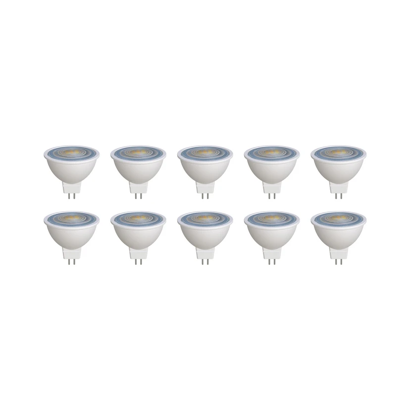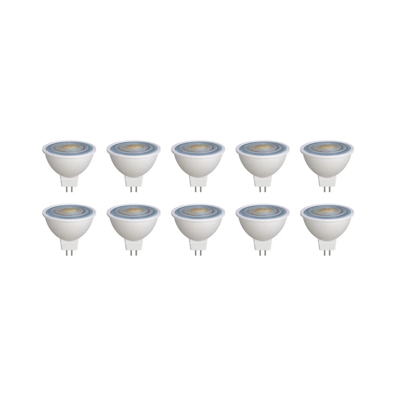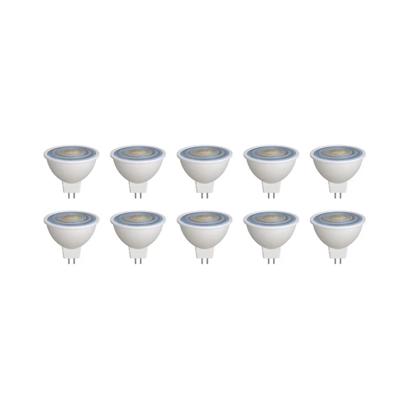GU5.3 7,5W-os LED-reflektor polikarbonátból, fehér, praktikus 10 darabos készletben Ez a LED-reflektor számos GU5.3 foglalattal rendelkező lámpához alkalmas. Polikarbonátból készült, fehér színének köszönhetően rugalmasan használható - nem dimmelhető - 7,5W - 621 lumen - 36°-os sugárzási szög - 10 darabos készletben szállítjuk