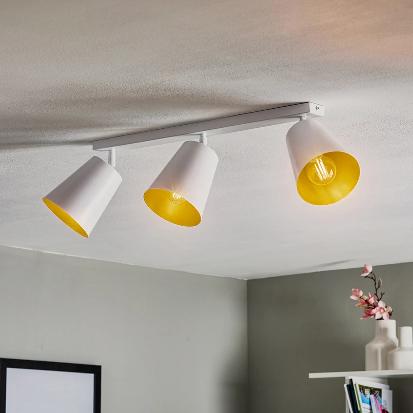 A kiváló minőségű acélból készült Prism mennyezeti spotlámpa ötvözi a modern dizájnt és a funkcionális világítást. A 3 izzós, elegáns fehér kivitel arany belső burkolattal lenyűgöző fényjátékot varázsol, amely minden helyiségnek különleges hangulatot kölcsönöz. Akár a nappaliban, a folyosón vagy az étkezőben, ez a mennyezeti spotlámpa stílusos akcentussal egészíti ki a modern berendezési stílust.