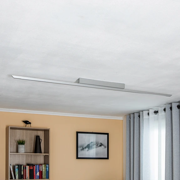 Keskeny Niara LED mennyezeti lámpa 4 fokozatú dimmerrel A Niara LED mennyezeti lámpa alumíniumból, sárgarézből és akrilból készült. A szürke felületet aprólékos kézi munkával készítették el, és speciális védőbevonattal látták el, amely megakadályozza a fém oxidálódását. Ez teszi a mennyezeti lámpát különösen robosztussá és tartóssá. Karcsú és diszkrét kialakításának köszönhetően könnyedén illeszkedik a különböző lakóterekbe és lakberendezési stílusokba. A Niara például konyhában, nappaliban vagy étkezőben is használható fényforrásként. A LED-es lámpa kellemesen meleg fényt bocsát ki a padló felé, és kellemes hangulatban fürdeti a helyiséget. Különösen praktikus - a fényerő a beépített 4 fokozatú fényerőszabályzóval a személyes igényekhez igazítható.