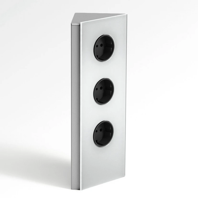 Ez a csiszolt rozsdamentes acélból készült 3-es aljzatcsatlakozó sor elegendő áramot biztosít a lakótér minden pontján, legyen az a konyha, a nappali vagy a folyosó. A háromszög alakú kialakításnak köszönhetően különösen helytakarékosan illeszkedik a sarkokba, függőlegesen vagy vízszintesen. Az elülső rész fehér üveglap borítja, ami különösen elegáns hatást kelt.