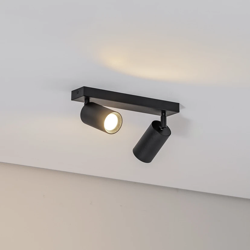 A Sado mennyezeti spotlámpa modern dizájnt ötvöz funkcionális rugalmassággal, és kiváló minőségű acélból készül. A fekete szín időtlen eleganciát kölcsönöz a spotlámpának, amely így tökéletesen illeszkedik különböző lakóterekbe, például a nappaliba, a hálószobába, az előszobába és az étkezőbe. A két fényforrás állítható irányának köszönhetően a világítás egyedileg beállítható, hogy célzott fényhatásokat hozzon létre vagy egyenletes megvilágítást biztosítson.