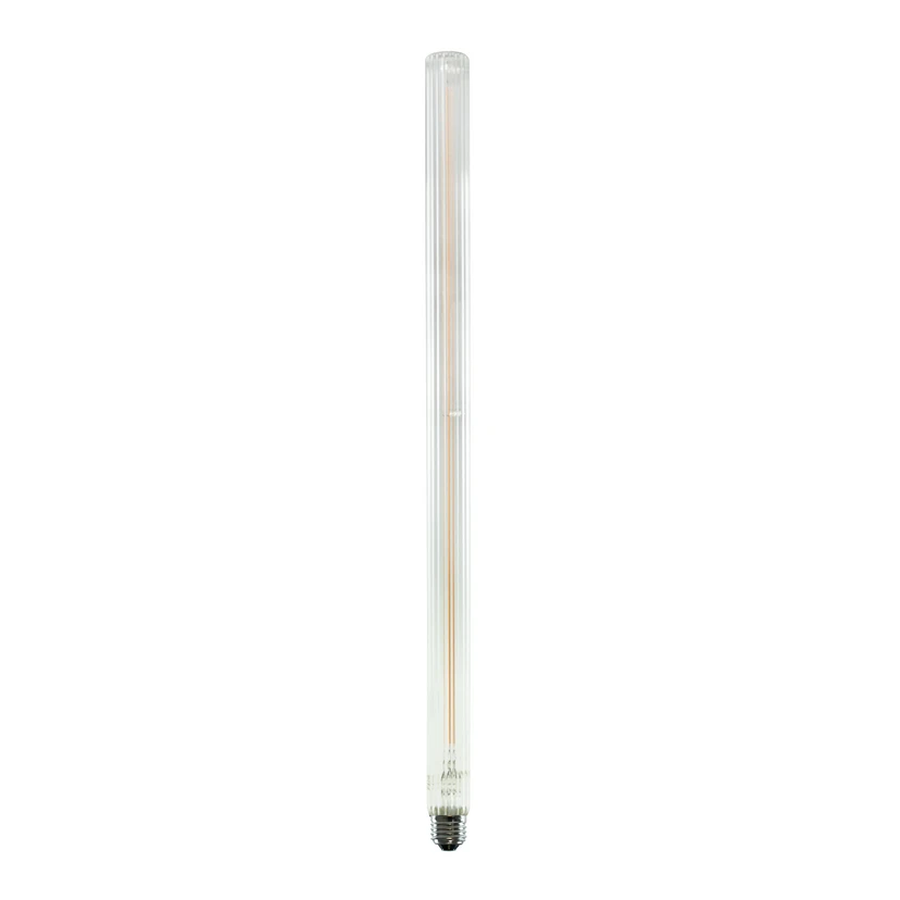 LED-lámpa E27 T55 6,2W hosszú cső alakú, bordázott üveggel Ez a SEGULA Soft Line sorozatú LED-lámpa ideális fényforrás számos világítási feladathoz, például egy lámpafoglalatban a nappaliban, köszönhetően a meleg fényszínnek, a legtöbb szabványos dimmerrel való szabályozhatóságnak és az átlátszó üvegből készült, finom bordázott szerkezetű, hosszú cső formájú, dekoratív megjelenésnek, valamint a beépített LED-szálaknak, amelyek megtévesztően hasonlítanak az izzószálakra.