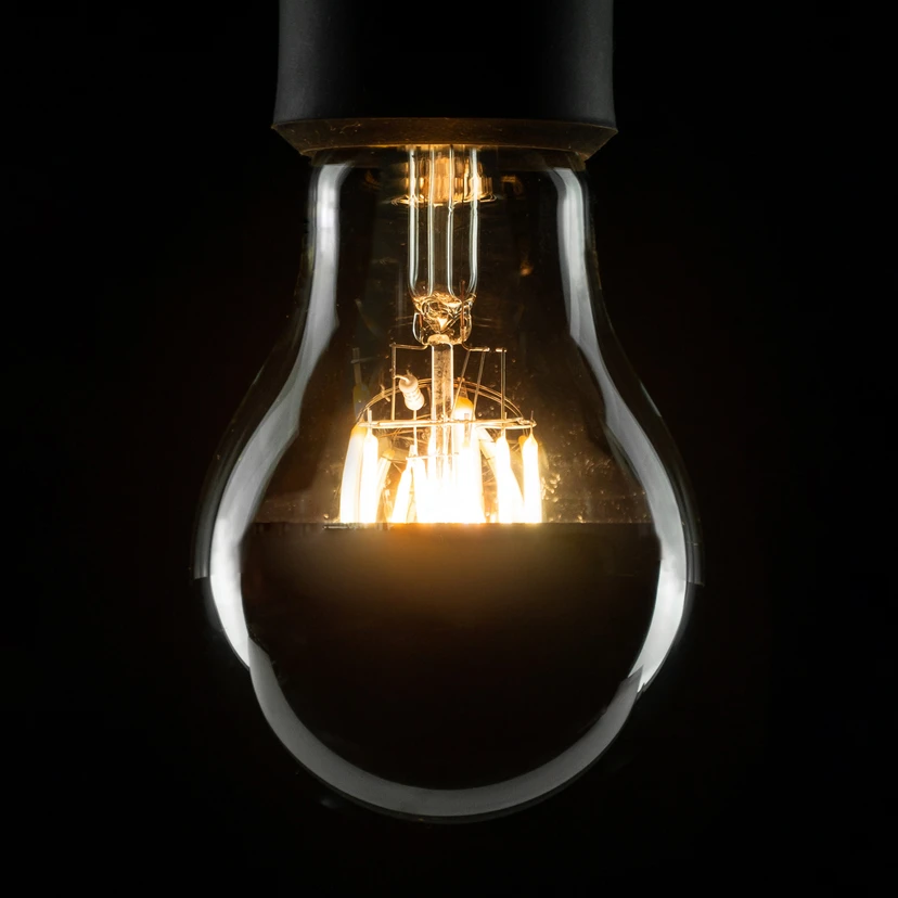 Dimmelhető E27 LED-es tükörfejes lámpa A67-es formátumban, 90 RA, 6,5 W Míg ennek az E27-es foglalatú LED-es lámpának a meleg fehér fénye akadálytalanul sugárzik oldalra és a foglalat irányába, a tükörfej megakadályozza a közvetlen fénykibocsátást. Ez biztosítja, hogy nem vakítja a szemlélőt, és összességében jó közvetett megvilágítást is biztosít. A fényerősséget kívülről is lehet tompítani. Kikapcsolt állapotban ez a részben látható izzószálakkal rendelkező LED-es tükörfejes lámpa vizuálisan is gyönyörködtető, mind az árnyékoló nélküli, mind a dekoratív lámpatestekben. - Összehasonlító érték: 45 watt - Meleg fehér fényszín (2700 K) - Magas színvisszaadási index (CRI >;90) - Kapcsolási ciklusok száma: 100.000 - Külsőleg tompítható