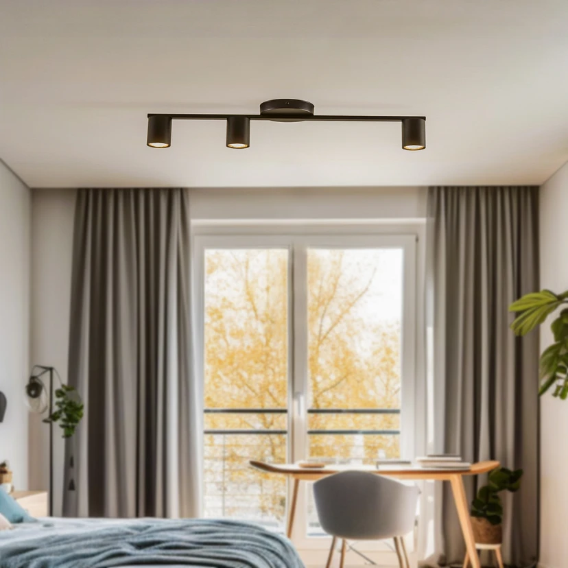 A Sky mennyezeti spotlámpa, 3 izzós, fekete színben, modern dizájnt ötvöz funkcionális rugalmassággal, és ideális választás stílusos lakóterekhez. Kiváló minőségű acélból készült, tiszta vonalvezetésével és fekete színének időtlen eleganciájával nyűgözi le a szemlélőt. Külső fényerőszabályozóval dimmelhető, így a fényerő egyénileg állítható, hogy a nappaliban, a folyosón vagy az étkezőben a kívánt hangulatot teremthesse.