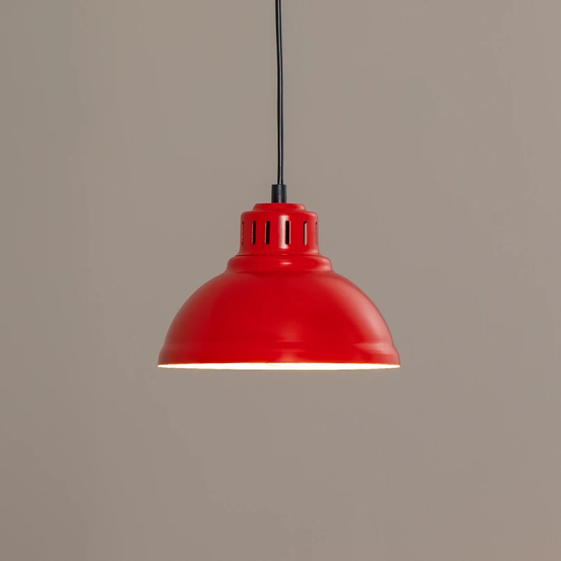 Sven függőlámpa élénkpiros színben, ipari megjelenéssel Az Európában gyártott Sven függőlámpa ipari dizájnjával sok helyiségbe illik - például a konyhába vagy az étkezőbe. A robusztus acélból készült, egylámpás, piros színű lámpatest egyenként vagy több lámpatestként felszerelve ideális az asztalok vagy pultok megvilágítására, és minden helyiséget színpompássá tesz. A világítás dimmelhető fényforrások (nem tartozék) kiválasztásával és külső fényerőszabályzóval kombinálva is tompítható.